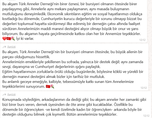 Derneğin burs yardımında bulunduğu programa katılan öğrencilerin mesajlarını aşağıda yayımlıyoruz.